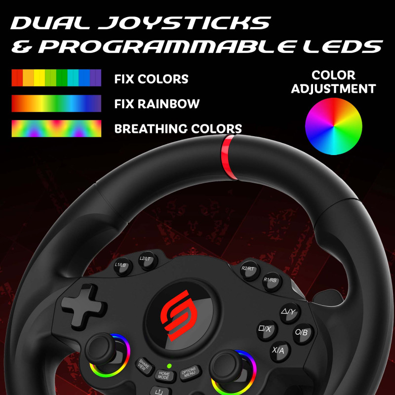 Programmable RGB LEDs around the sticks provide a dynamic visual effect, perfect for feeling the intensity of a race.