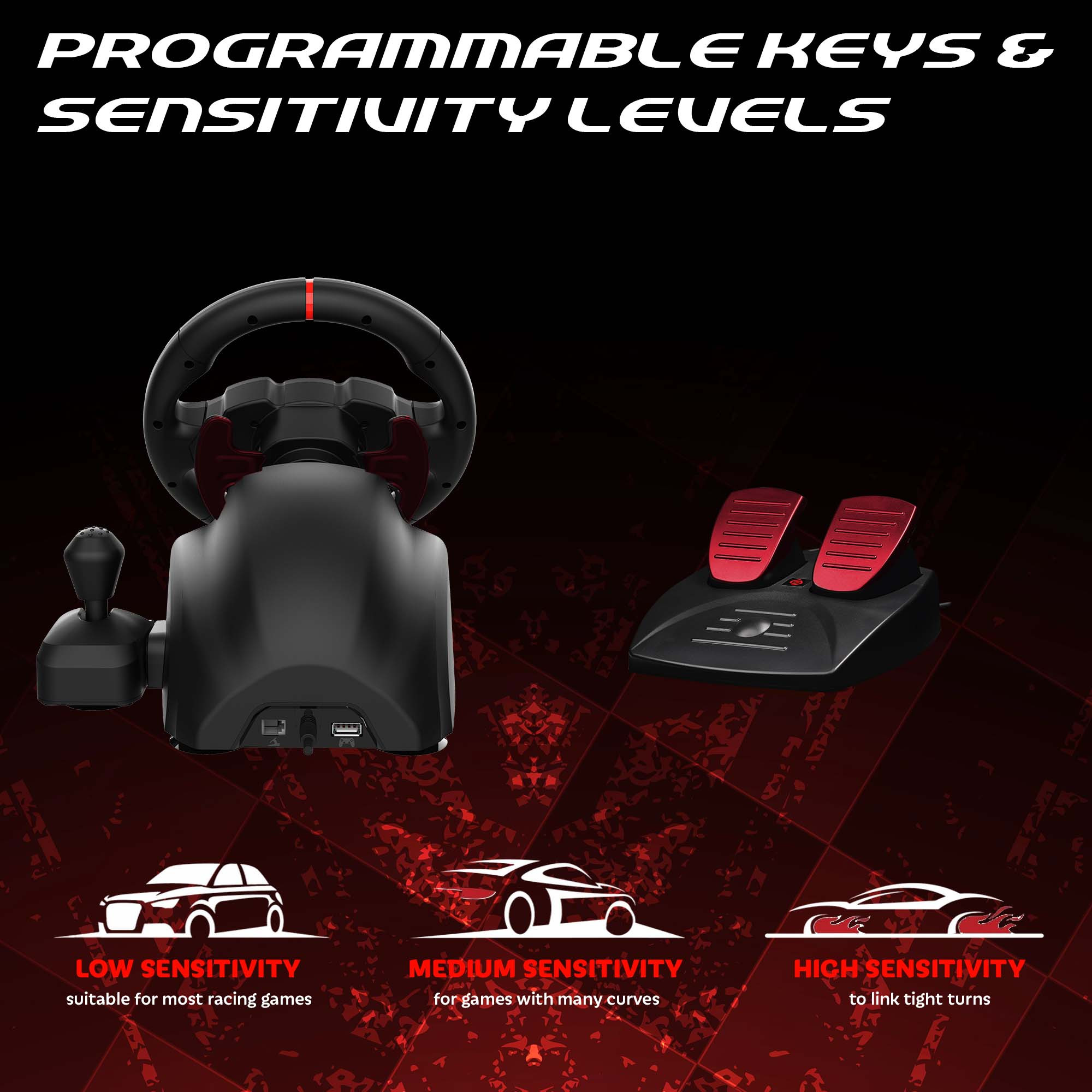 Programmable buttons and 3 sensitivity levels make it suitable for all types of racing.